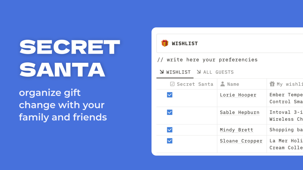 For those who enjoy participating in Secret Santa gift exchanges, use any online generator to organize anonymity. In the party planner, you can share gift preferences and links.